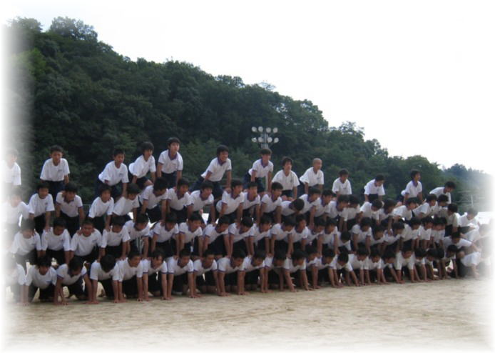 | 組体操 気合だ | ピラミッド 頑張れ | 3段タワー | 4段タワー やったー! |